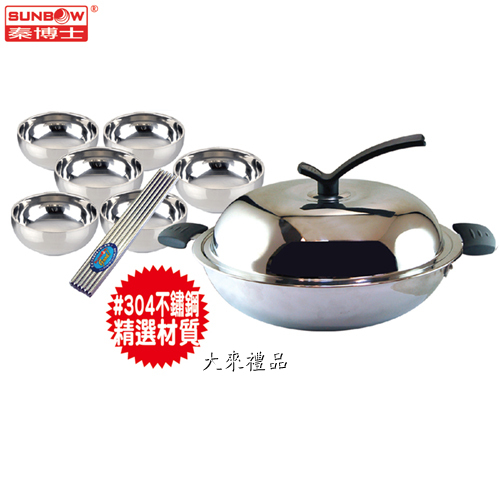 秦博士雙耳五層炒菜鍋+11.5cm雙層隔熱碗6入+22.8cm筷6雙