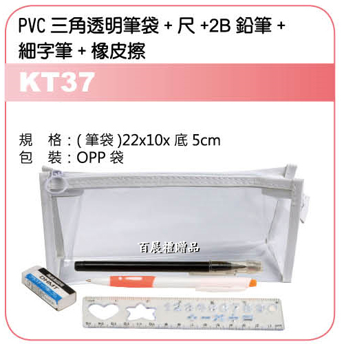 PVC三角透明筆袋+尺+2B鉛筆+細字筆+橡皮擦
