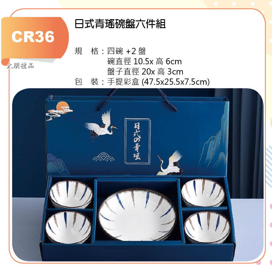 日式青瑤碗盤六件組