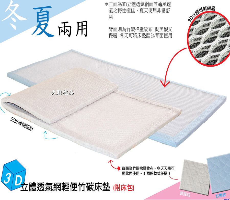 品   名:  3D立體透氣網輕便竹碳床墊3.5×6.2