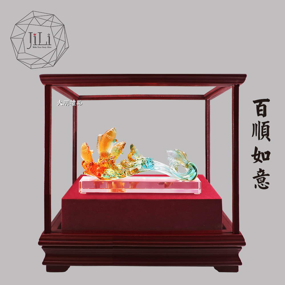 材質:脫蠟琉璃/水晶底座/實木櫥窗