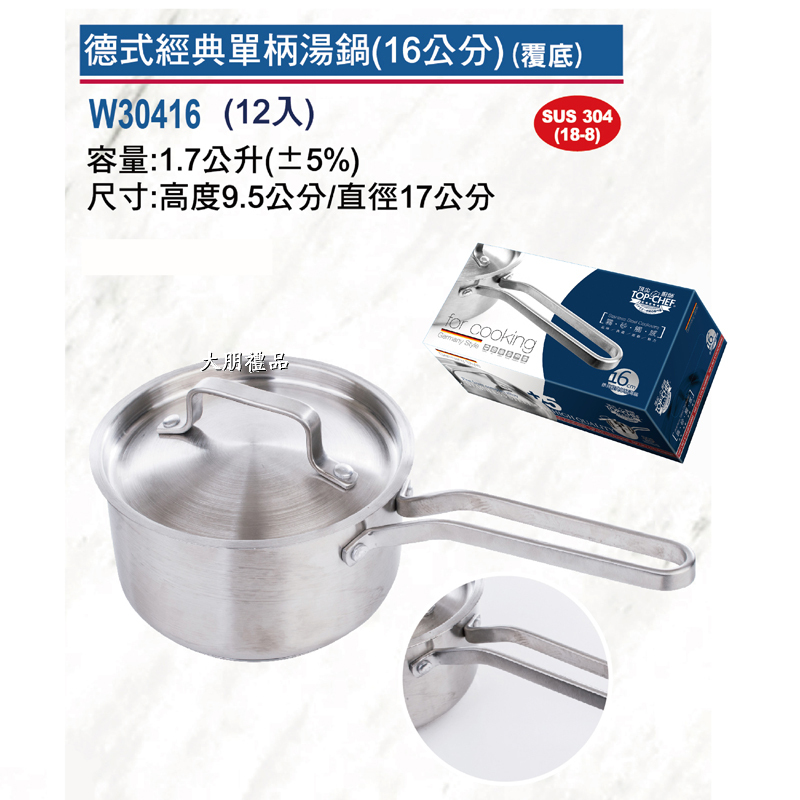 品   名:  TOPCHEF#304德式經典單柄鍋(16cm)