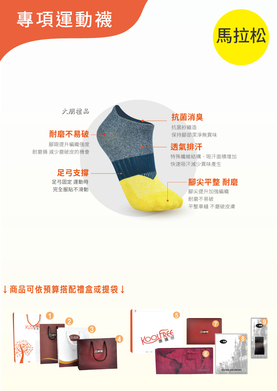 品   名:  旅行家防黴排汗馬拉松跑襪