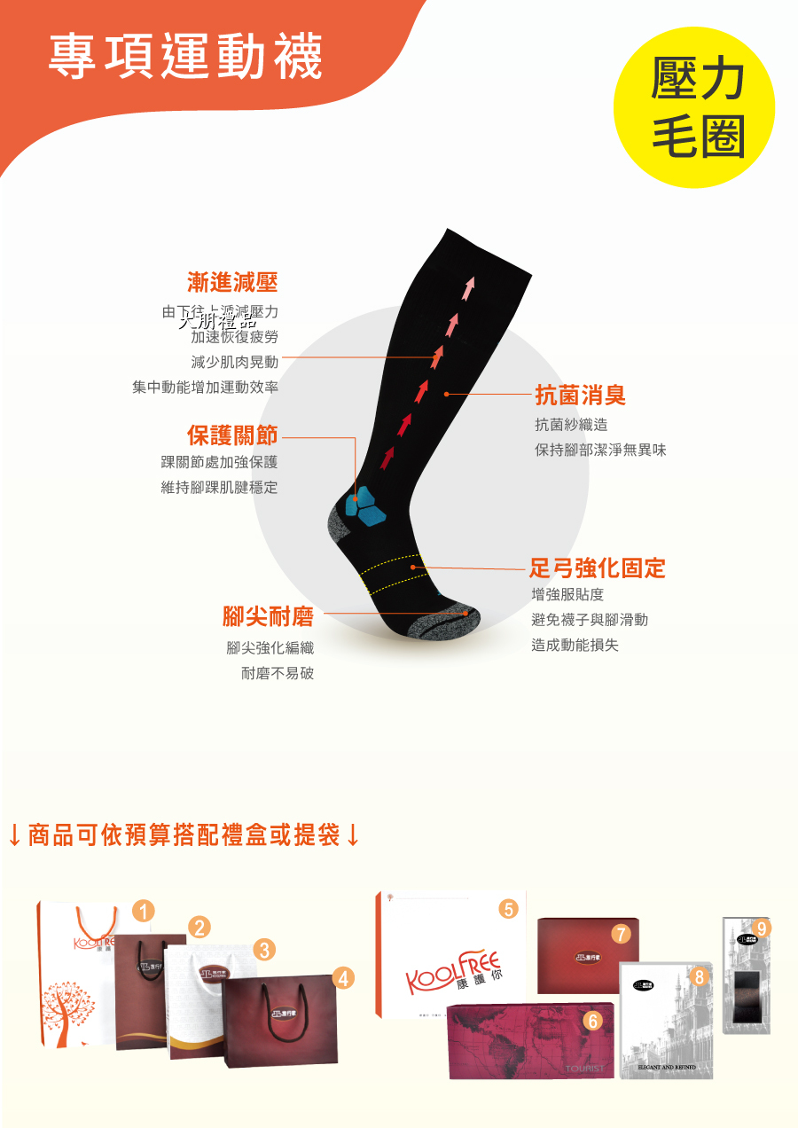 品   名:  旅行家防黴排汗毛圈運動壓力小腿襪