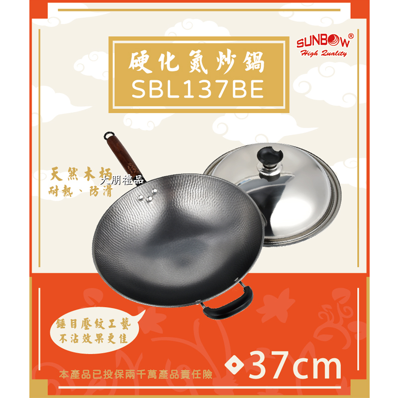 (1) 採用高韌性精鐵材質,鍋內錘目壓紋工藝。