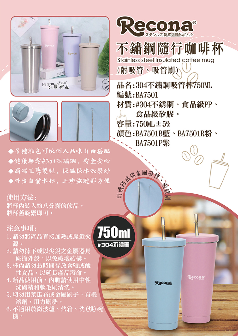 材質: #304不鏽鋼、食品級PP、食品級矽膠