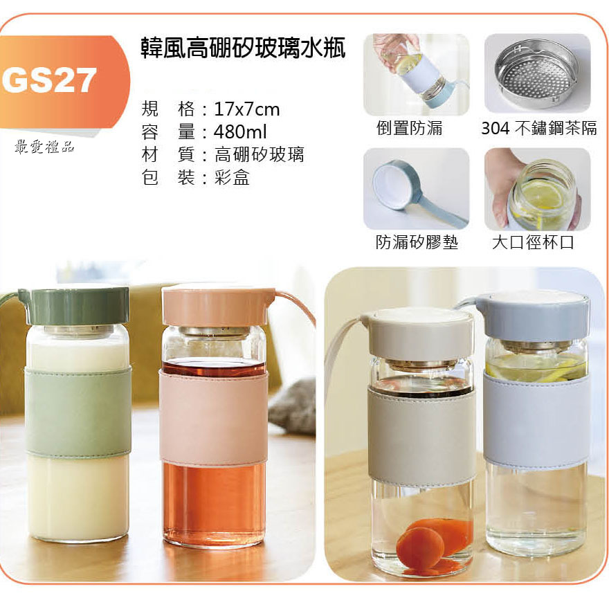 韓風高硼矽玻璃水瓶