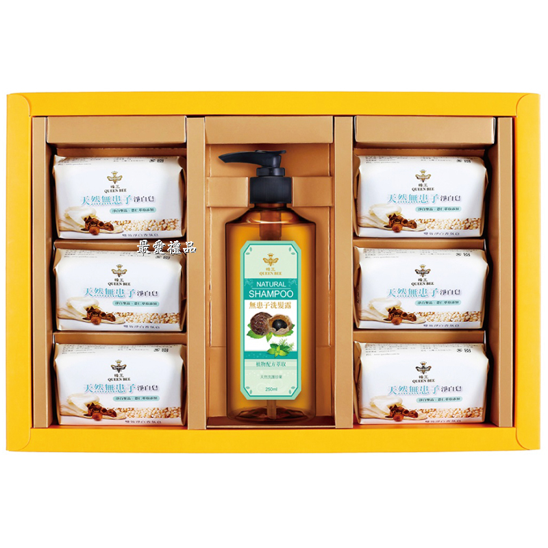 品   名:  蜂王無患子淨白皂6入+無患子洗髮精禮盒