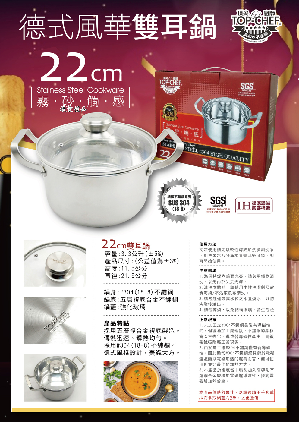 22cm雙耳鍋