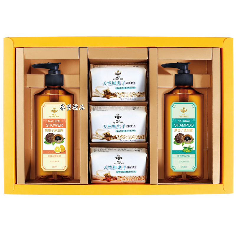 蜂王無患子淨白皂3入+無患子沐浴用品2入禮盒