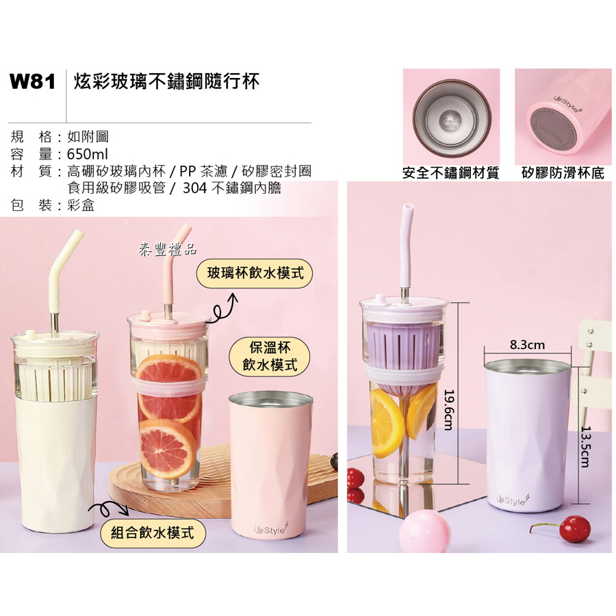 材質:高硼矽玻璃內杯/PP茶濾/矽膠密封圈/食用級矽膠吸管/304不鏽鋼內膽