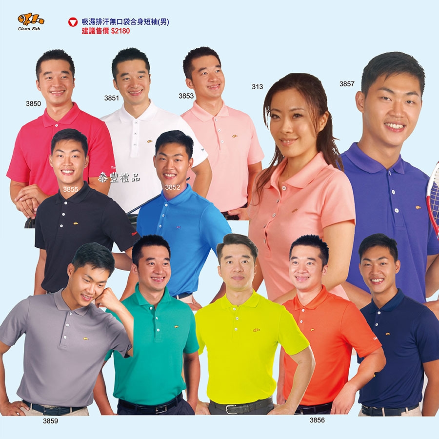 小丑魚吸濕排汗無口袋合身短袖(男)-POLO衫
