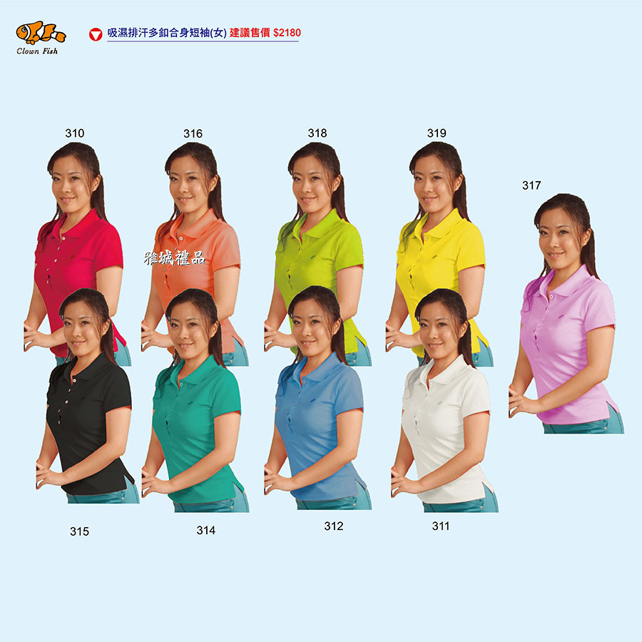 品   名:  小丑魚吸濕排汗多釦合身短袖(女)-POLO衫