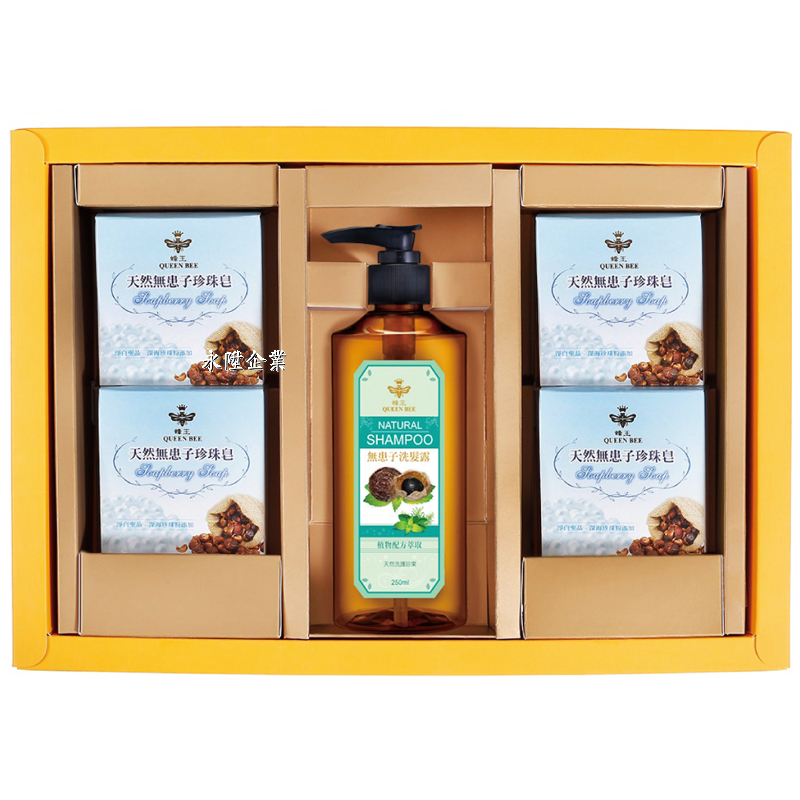 蜂王無患子珍珠皂4入+無患子洗髮露禮盒