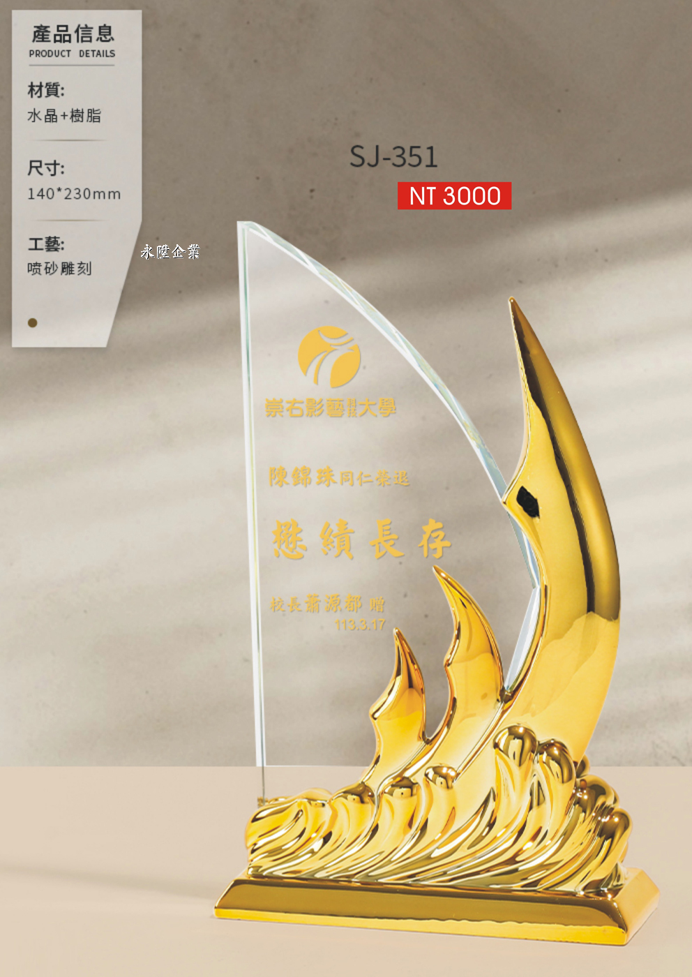水晶砂刻獎盃