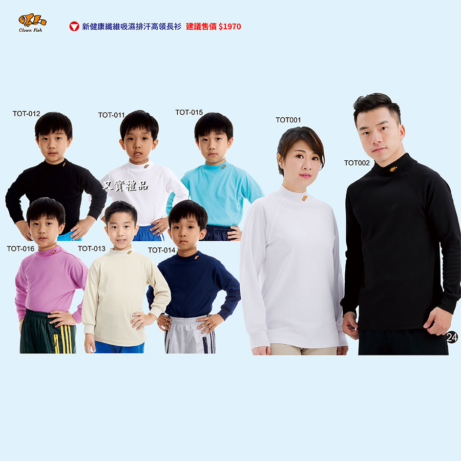 品   名:  小丑魚新健康纖維吸濕排汗高領長衫