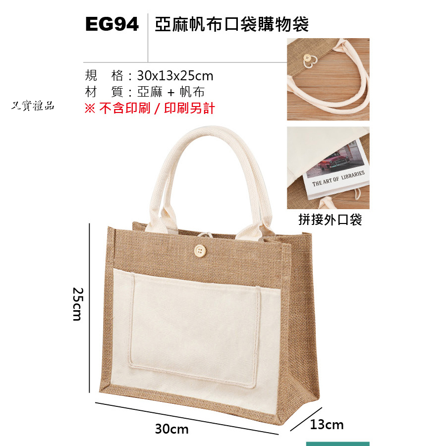 亞麻帆布口袋購物袋