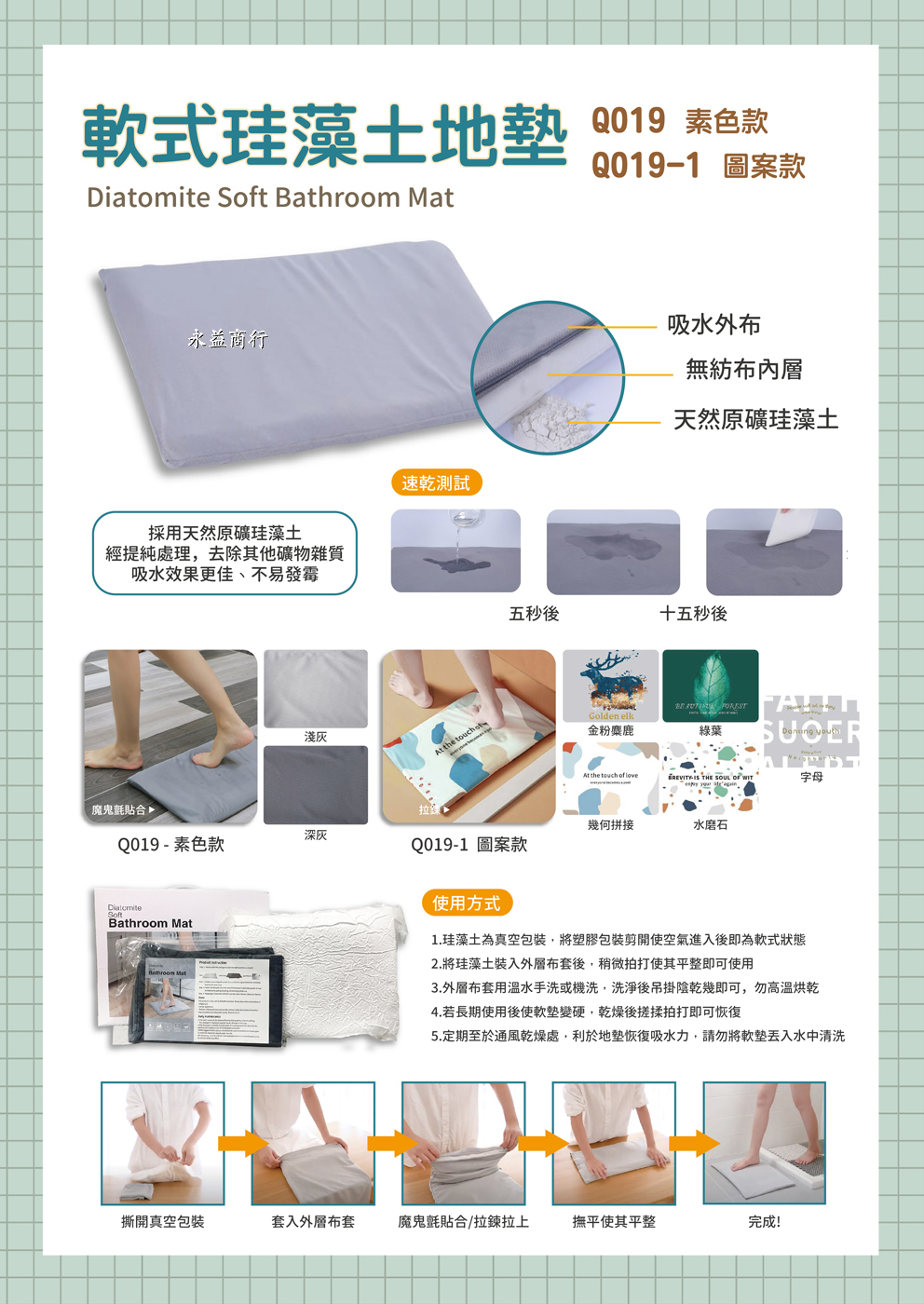 ◎軟式珪藻土地墊,蓬鬆柔軟,吸水力更升級!